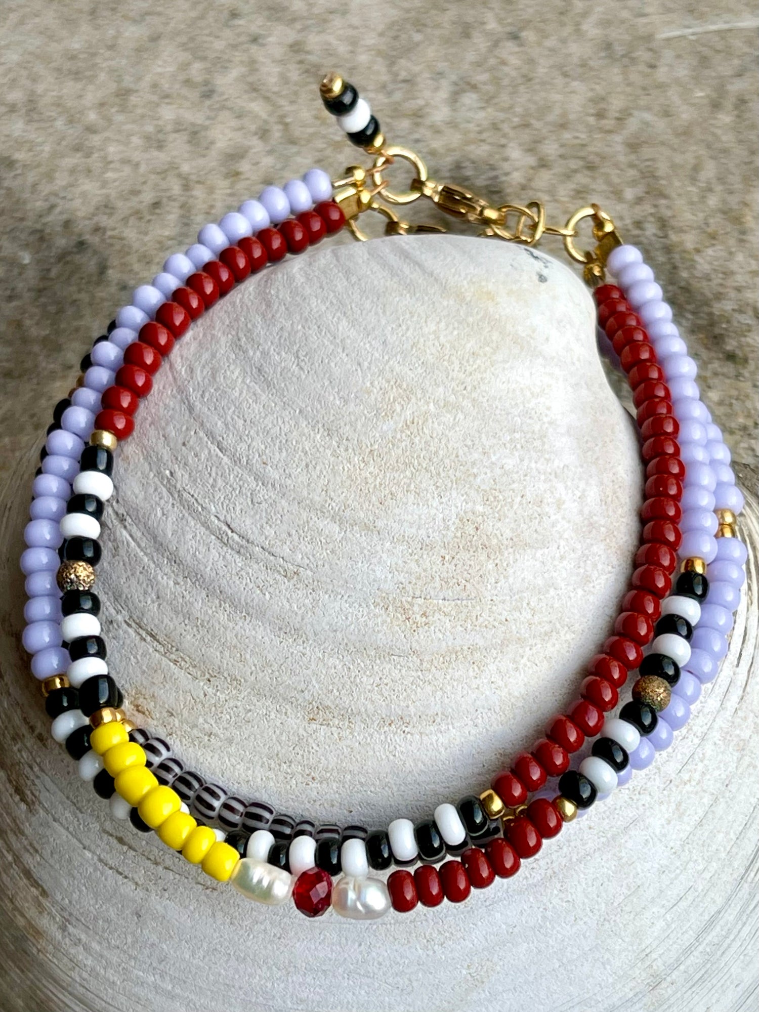 Håndlavede design smykker lavet af ferskvandsperler, glasperler og Seed Beads. Der bruges forgyldt sølv og messing.