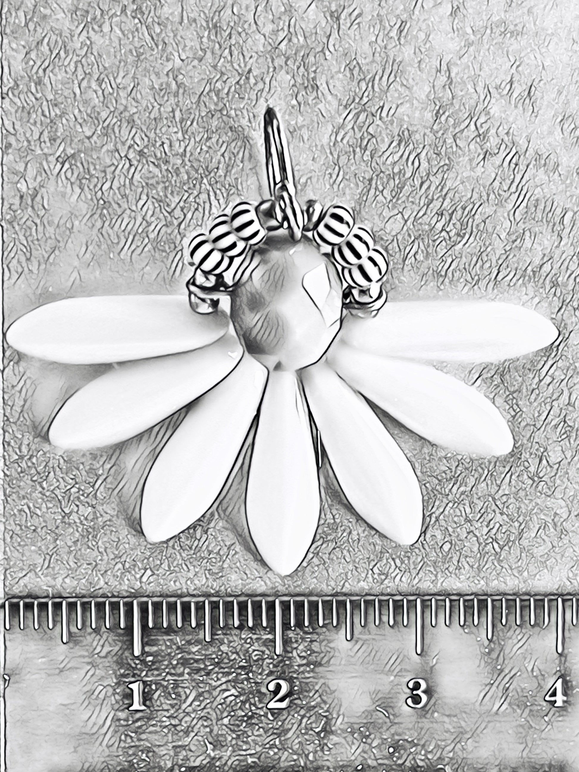 Øreringen måler ca. 4 cm i bredden og 3,5 cm i længden med ørekrogen.