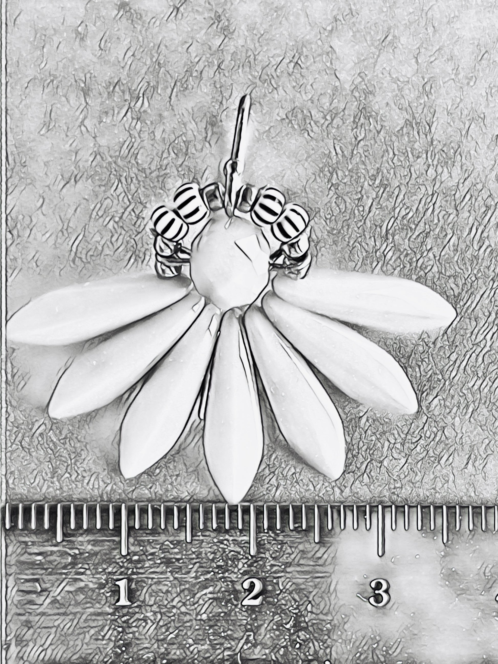 Øreringen måler ca. 3,8 cm i bredden og 3,5 cm i længden med ørekrogen.