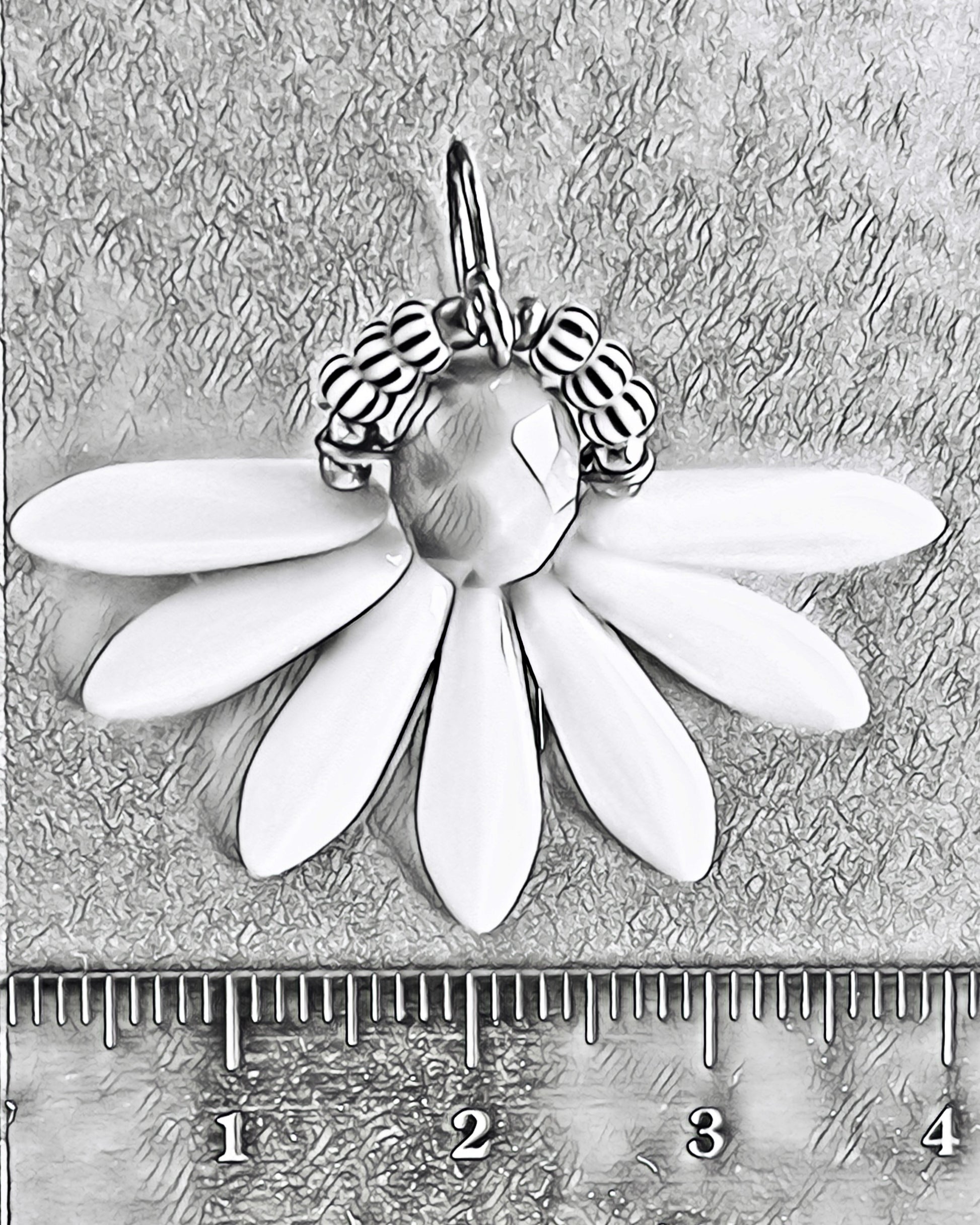 Øreringen måler ca. 4 cm i bredden og 3,5 cm i længden med ørekrogen.